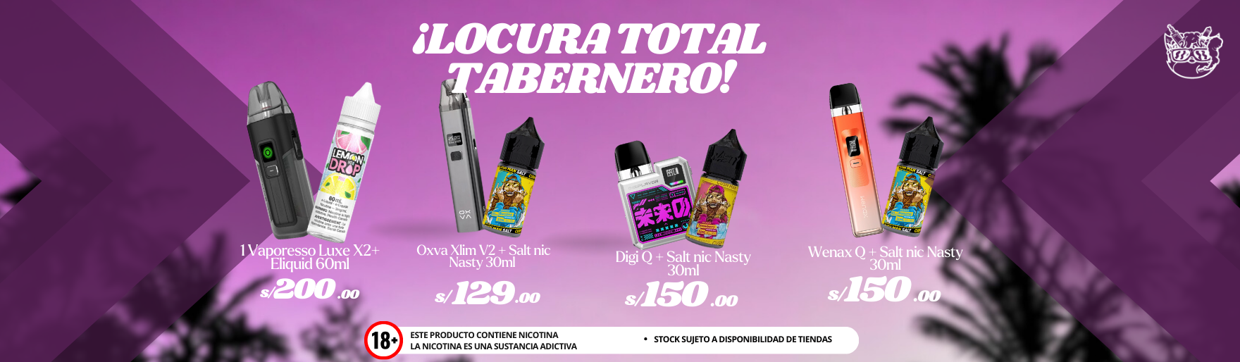 Proveedor:Taberna Del VapeadorPrecio habitual S/. 229.00 PENPrecio habitualPrecio unitario / por -