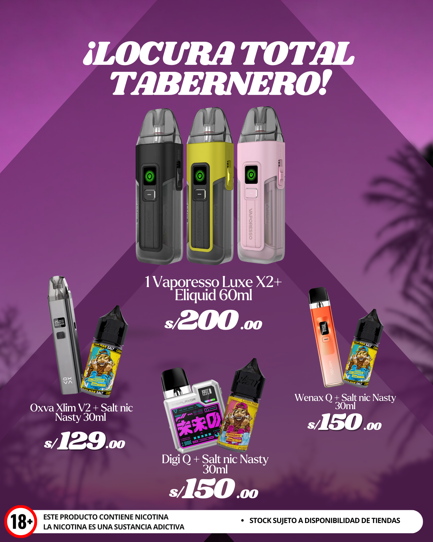 Proveedor:Taberna Del VapeadorPrecio habitual S/. 289.00 PENPrecio habitualPrecio unitario / por -